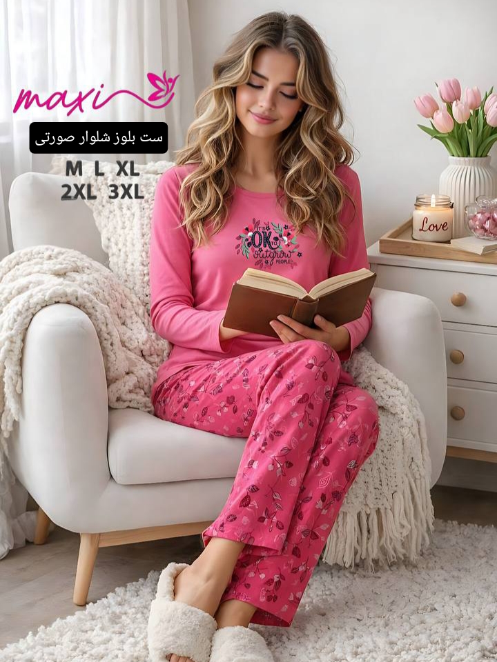 ست بلوز آستین بلند و شلوار زنانه نخ پنبه multiblue
