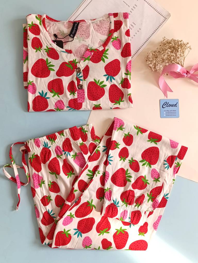 ست بلوز و شلوار زنانه اچ اند ام نخ پنبه طرحدار آستین بلند دکمه دار