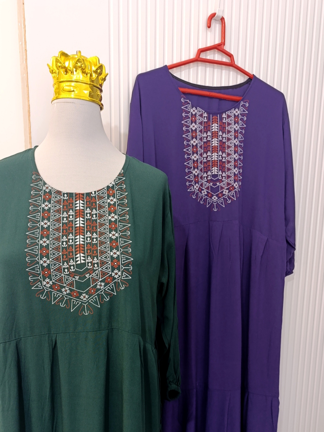 مانتو بلند جلو بسته گلدوزی زنانه (پیراهن جلو دکمه)