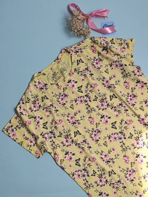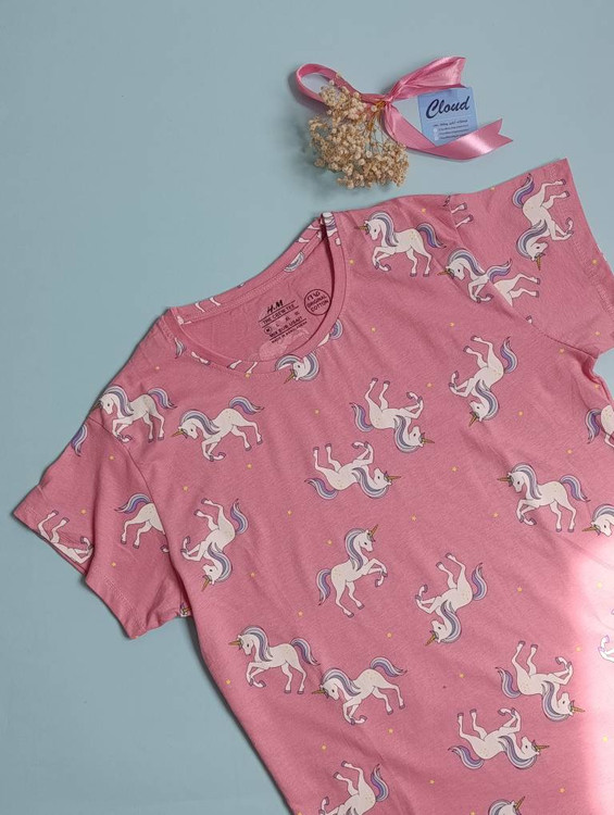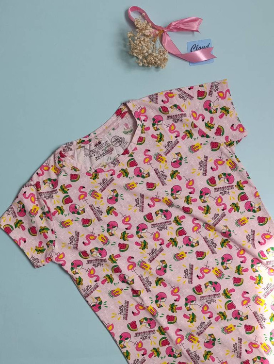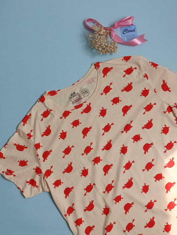تیشرت اچ اند ام زنانه نخ پنبه طرحدار فانتزی