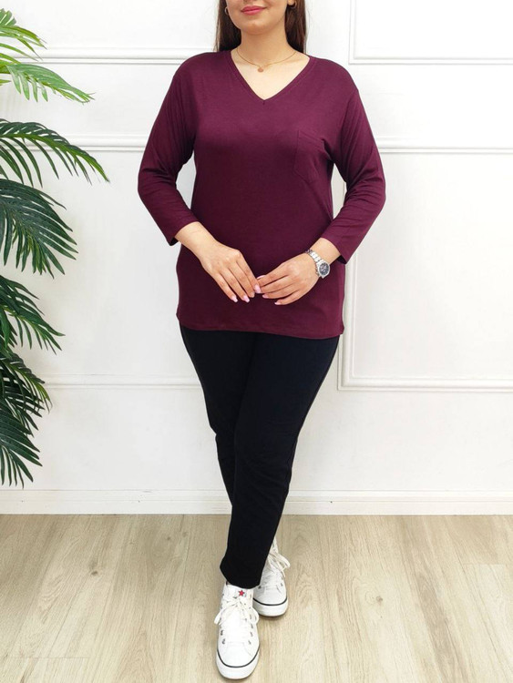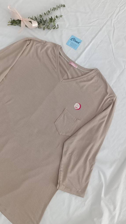 تیشرت ویسکوز یقه هفت جلو جیب دار.
