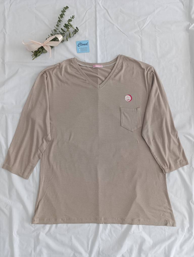 تیشرت ویسکوز یقه هفت جلو جیب دار.