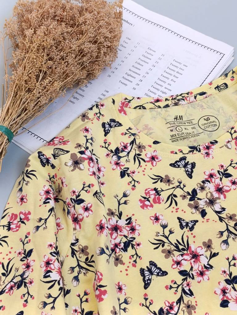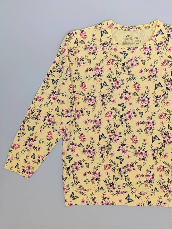 بلوز آستین بلند زنانه نخ پنبه طرحدار فانتزی اچ اند ام