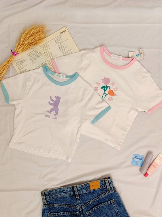 کراپ تیشرت وارداتی پریمارک در دو رنگ شیری و سفید.