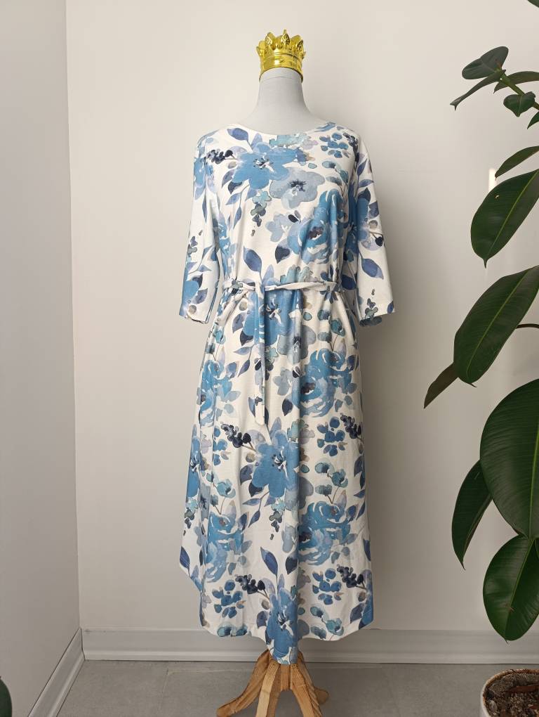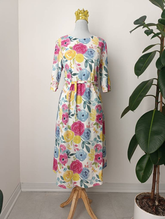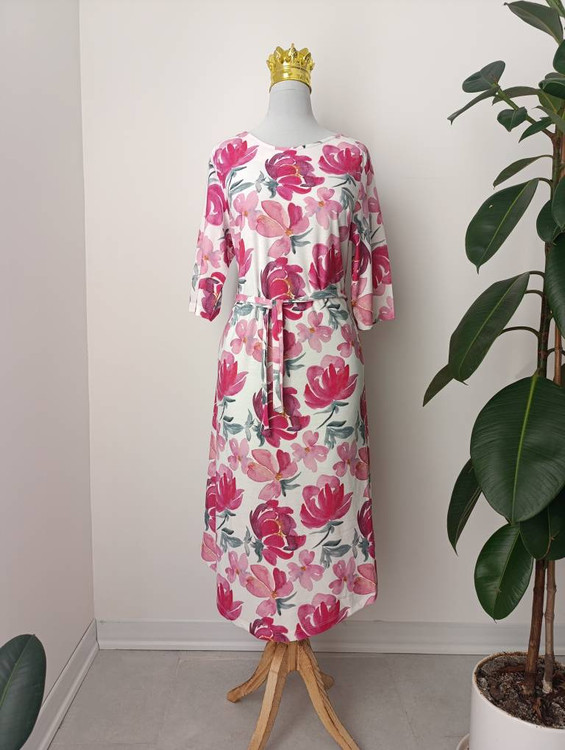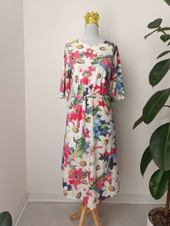 پیراهن بلند ماکسی پنبه گلدار آستین سه ربع