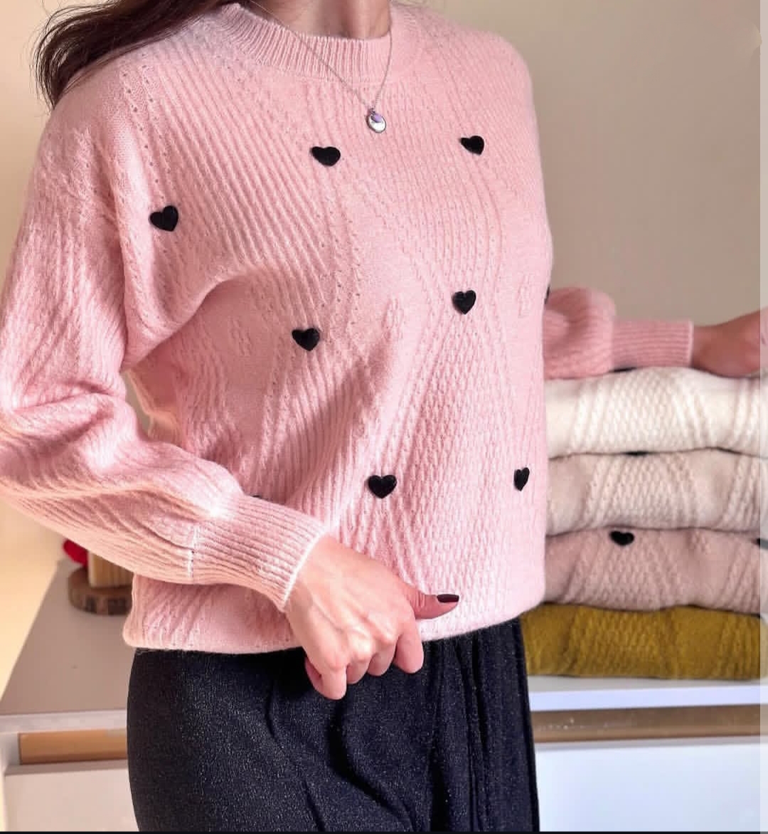 بلوز بافت وارداتی لطیف زنانه با قلب های برجسته