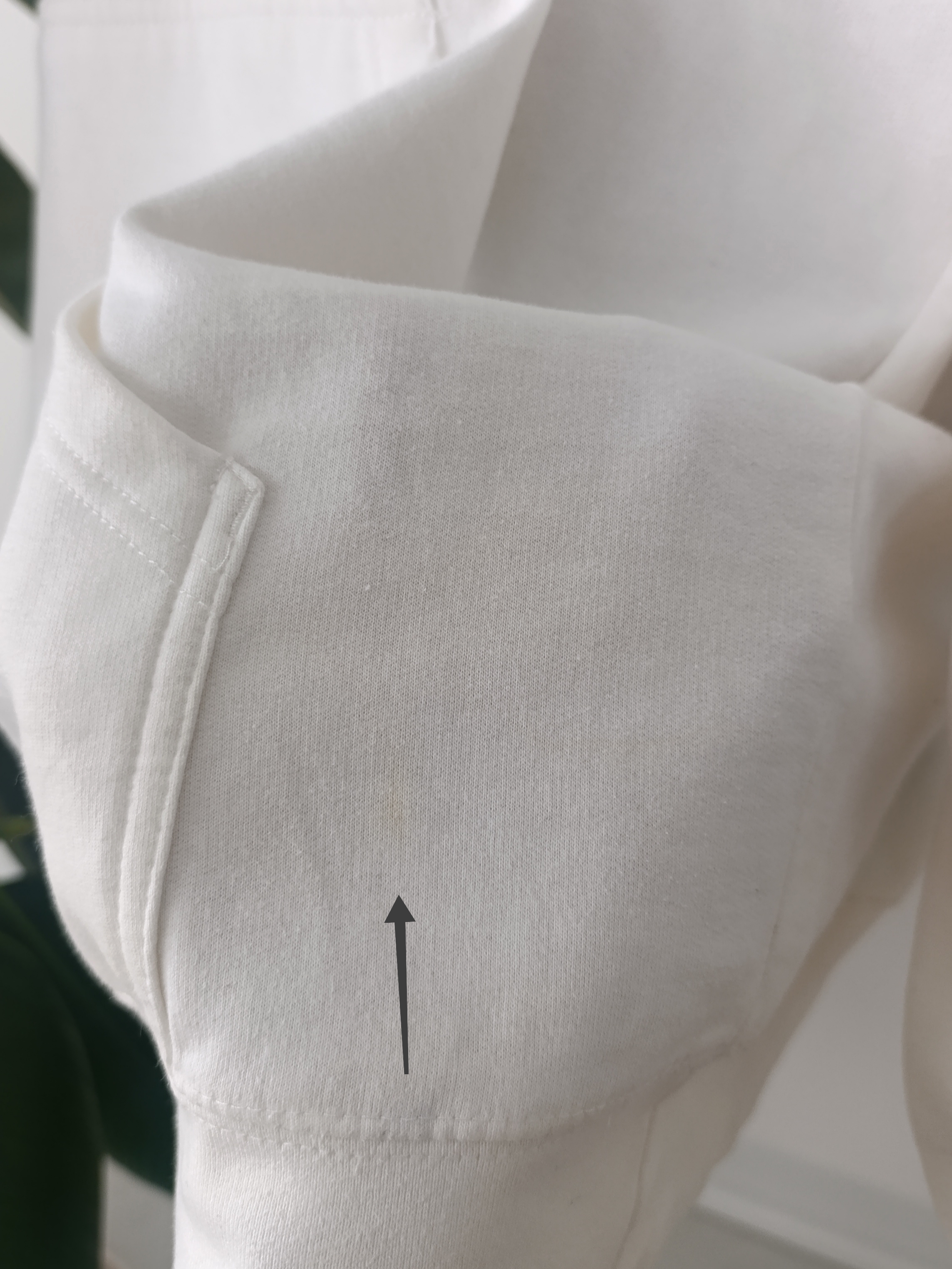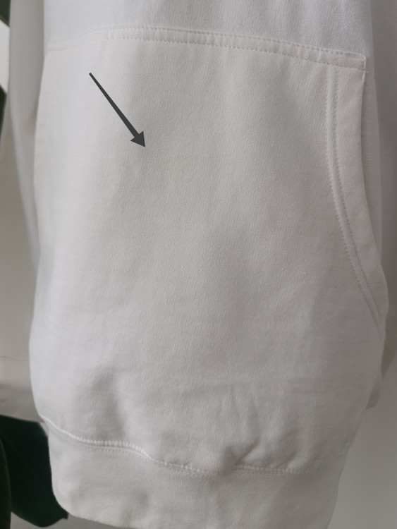 ( رنگ سفید یکم رو قسمت جیب و اطرافش لک زرد کمرنگ داره، تو عکس با فلش مشخص شده ، اما انقدر کمرنگ هست دیده نمیشه. به همین علت قیمتش کمتر هست)