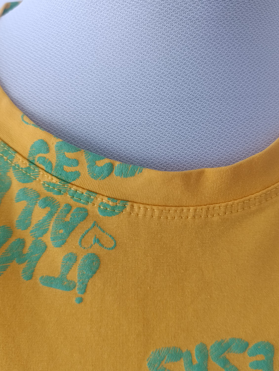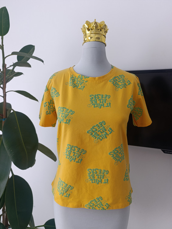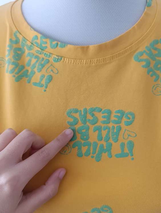 فقط تیشرت زرد، طرح برجسته دارد.