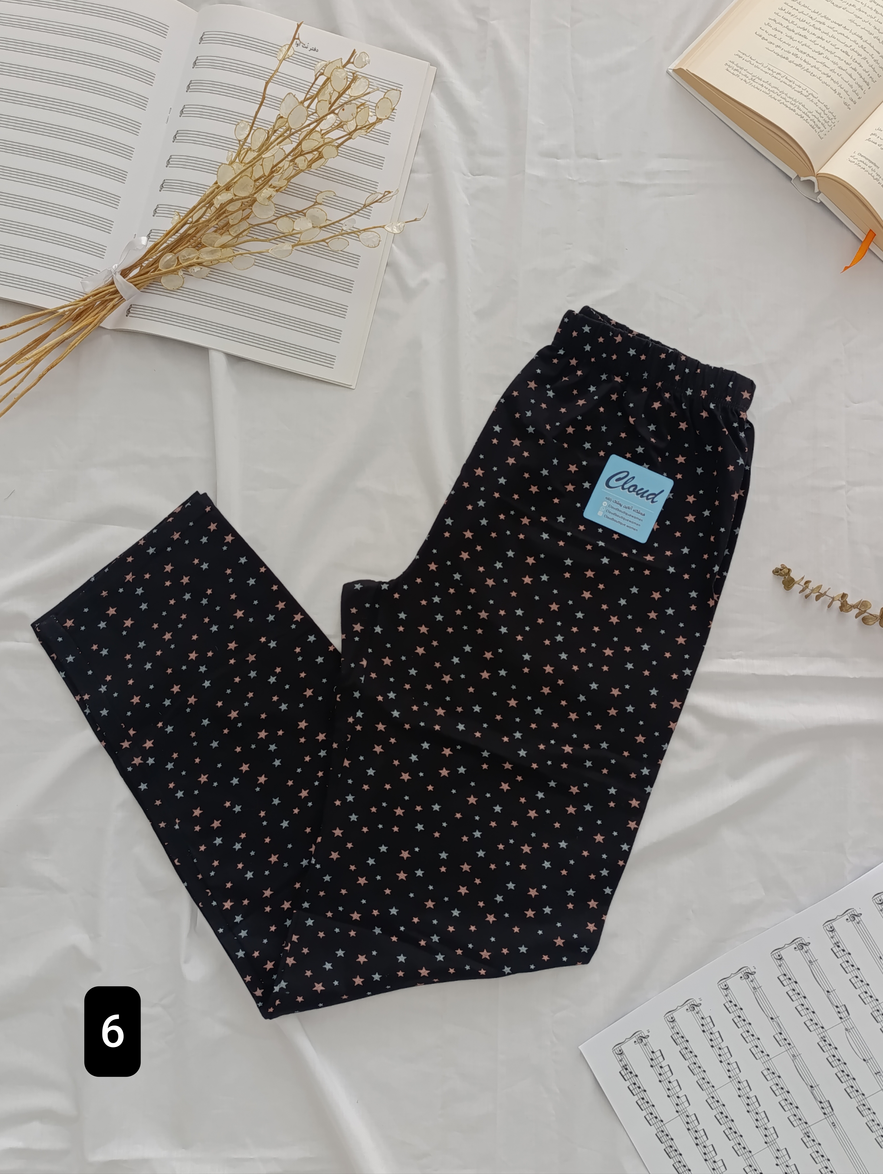 شلوار راحتی زنانه پنبه طرحدار فاق بلند مرغک دار
